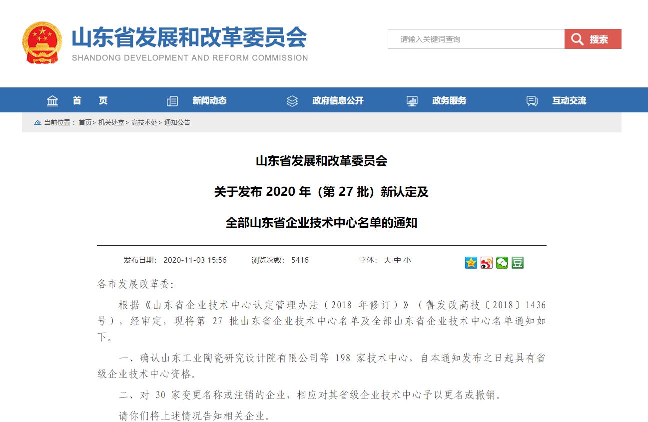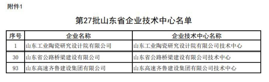 近日,山东省发展和改革委员会下发《关于发布2020年(第27批)新认定及全部山东省企业技术中心名单的通知》,山东九游会官方网站子公司公九游会官方网站梁、齐鲁建设技术中心同时通过评审,被正式公布为第27批省级企业技术中心。
